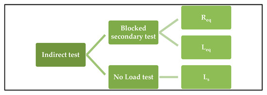 - Equivalent Resistance equation: Equation (22) calculates the of the indirect tests, where is the primary resistance, the secondary resistance, the magnetizing inductance, the secondary inductance and the angular frequency.