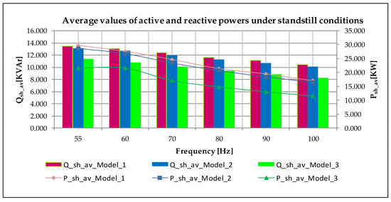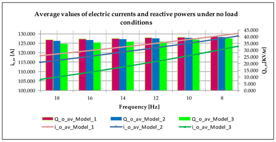 Average reactive powers and electric currents absorbed under no load conditions.