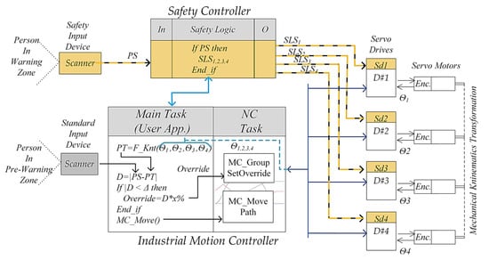 - Unnikrishnan, N.; Hull, K.; Nicolson, E. A Review of Challenges in Integrating Robot and Motion Control Into a Single System. In Proceedings of the Volume 14: Emerging Technologies; Materials: Genetics to Structures, Tampa, FL, USA, 3–9 November 2017; Safety Engineering and Risk Analysis; American Society of Mechanical Engineers: Tampa, FL, USA, 2017; p. V014T07A017. [Google Scholar]