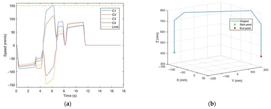 - Barbazza, L.; Oscari, F.; Minto, S.; Rosati, G. Trajectory Planning of a Suspended Cable Driven Parallel Robot with Reconfigurable End Effector. Robot. Comput.-Integr. Manuf. 2017, 48, 1–11. [Google Scholar] [CrossRef]
