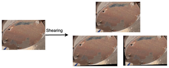 Geometric image warping is applied by selectively skewing rows of pixels horizontally or vertically. By generating sheared versions (Figure 3), model robustness against affine transformations improves.