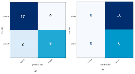 Figure 9 illustrates sample confusion matrices for the best and worst performing models, pre-trained ViT and sequential CNN, respectively, on the test dataset. The sequential CNN matrix reflects very high false negatives, with most missing bolt cases being incorrectly predicted as bolt-present. This signifies the model’s inability to capture discriminative visual patterns characteristic of absent bolts adequately.