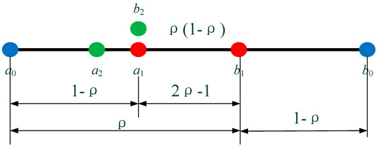 The interval contraction is repeated as [a0,b0] → [a0,b1] → [a2,b1], as shown in Figure 6. The mathematical relationship is provided in (18). By solving (18), the interval compression ratio ρ corresponds to 0.618. In particular, a1 and b1 denote the golden section point of the interval [a0,b0], whereas a2 and b2 denote the golden section point of the interval [a0,b1].