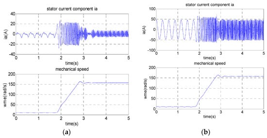 Acceleration from 100 rpm to 1500 rpm: (a) without load; (b) with rated load.