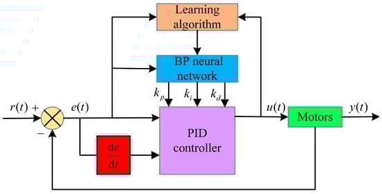 Through the autonomous learning of a BP neural network, the parameters of the incremental PID controller were adjusted in real time, achieving control of the motors’ speeds and phases. The step summary of the BP PID control algorithm was as follows: