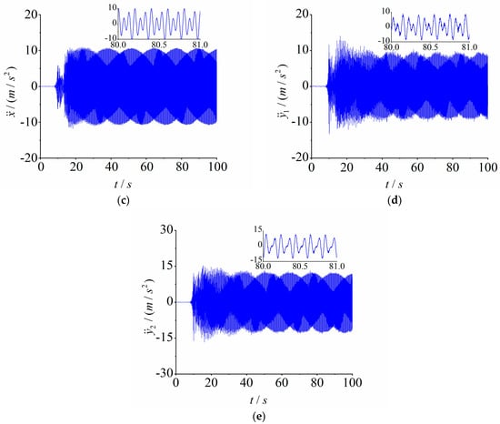 Substituting Equation (4) into (1), we can obtain the response equations of the vibrating system in the three directions: , , and .