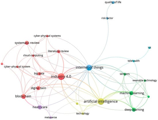 Figure 2 shows the outcomes of a clustering study carried out on a collection of documents. The texts are grouped depending on how well references are coupled (field “CR”), with the “walktrap” clustering technique being used. The parameters of the analysis are also provided, including the number of documents (n = 250), the lowest frequency (minfreq = 0), and others. A Cluster Number, a Normalized Local Citation Score, and a unique identity (such as “WANG X, 2023, IEEE TRANS SYST MAN CYBERN SYST”) are alloted to each publication. While the Cluster Number designates the exact cluster to which the document belongs, the Normalized Local Citation Score reveals the citation impact of the document in its local cluster. The clusters are identified by their frequency, centrality, influence, and distinctive color coding. They are labelled with a combination of phrases (label.term = “DE”). The terms used to designate the clusters are probably drawn from the keywords or topics of the papers, and they provide an idea of the primary themes of the texts contained inside each cluster. For instance, Cluster 1 is marked as “industry 4.0—conf 42.1%, human factors—conf 45.5%, social sustainability—conf 75%”, indicating that these are the themes that are the most common in this cluster. The percentages may correspond to the proportion of documents in the cluster that contain these terms. The information shows that there are 18 clusters made up of the documents, each with a different theme like Industry 4.0, Human Factors, Sustainability, Deep Learning, Artificial Intelligence, Internet of Things, etc. The number of articles in each cluster is indicated by the frequency column in the label data, while the cluster’s centrality and impact columns indicate the cluster’s relative relevance in the network. Figure 3 shows the co-occurrence network for ergonomics and related keywords, while Figure 4 shows the thematic map for network visualization.