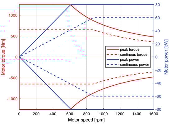 In this context, the powertrain has been redesigned to exploit all the features offered by electric motors []. In fact, more than one motor can be fitted in the vehicle. Among distributed motor powertrains, a common approach is that of In-Wheel Motors (IWMs), which allows for effective packaging and high efficiency []. Moreover, using distributed motors allows significant improvements from the vehicle dynamics point of view. The possibility of independently controlling the torque on each wheel quickly and precisely makes applying Torque Vectoring Control (TVC) strategies easy. Indeed, Torque Vectoring (TV) consists in applying different longitudinal forces to the wheels of the same axle, resulting in a yaw moment that is used to control the vehicle lateral dynamics. Different powertrain layouts have been compared in the literature [,,,], and it is generally agreed that the best performing one is that with a four independent wheel drive system. Moreover, in certain cases, TV control is also combined with Active Front Steering (AFS) [], Active Rear Steering (ARS) [] and Four-Wheel Steering (4WS) [,].