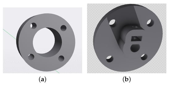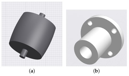 On the other hand, the spacer (Figure 4a) is utilized to have an identical distance between the lateral caps and the middle cap, while the shaft coupling (Figure 4b) is designed to be coupled to the motor shaft.