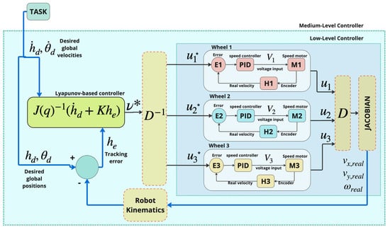 - Because the two types of mobile robots addressed in this work have a different kinematic model, a control scheme was proposed to validate their design and construction, consisting of two levels of hierarchy: low and medium levels of control.