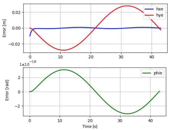 Since matrix is a definite positive, one can conclude that is a definite negative; the tracking errors converge asymptotically to zero, and the mobile robot follows the desired trajectory. □