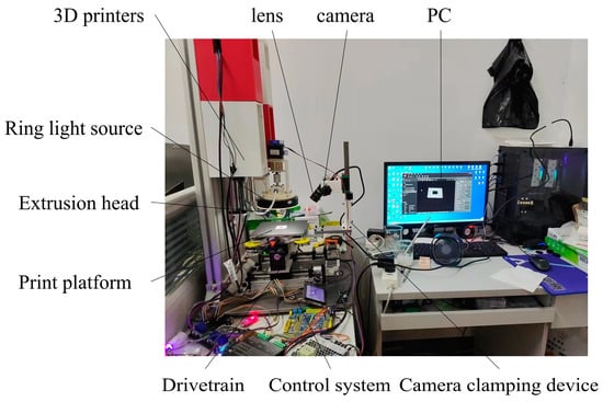 Machine vision technology, which has been developed in recent decades, is a non-destructive, non-contact method of automatic inspection. It is a useful tool for achieving equipment automation, and intelligent and precision control. Its many benefits include a high productivity, long working hours in challenging environments, safety and dependability, and a wide range of spectral responses [17,18]. Furthermore, the use of machine vision technology to carry out real-time online defect detection on 3D printing is also a novel method that can ensure the high precision of processed parts and meet the requirements for mechanical properties of parts in high-end manufacturing while reducing the processing time and processing costs and improving the yield rate of parts [19,20,21,22,23]. At present, the research to introduce visual inspection into the 3D printing process has gradually become a new exploration direction [24,25,26,27,28,29,30]. Fang et al. [31] used machine vision to detect surface paths in the printing process. Pitchaya Sitthi-Amorn [32] developed a system to detect fluctuations in the Z-direction. Mingtao Wu [33] designed a system to detect the top view of a printer. Weijun Sun et al. carried out the design of a multi-angle visual inspection system for robot 3D printing, and proposed a virtual–real matching defect detection algorithm for model self-features to reduce the false detection rate and improve the detection accuracy in view of the misidentification of the model’s own features and real defects in the existing visual inspection technology. Jeremy Straub [34] designed a multi-camera inspection system for Cartesian structural printers, using a five-position camera with a fixed position to inspect the outer surface of a print. Oliver et al. [35] designed a real-time detection system for fused filament processing 3D printing, which detects printing defects in real time by monitoring the parts during the printing process, using a 3D digital image camera to obtain geometric shapes, and comparing the printed geometry with the computer model.