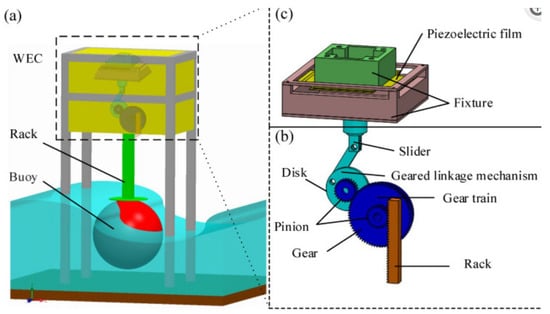 - Chen, S.E.; Yang, R.Y.; Wu, G.K.; Wu, C.C. A Piezoelectric Wave-Energy Converter Equipped with a Geared-Linkage-Based Frequency Up-Conversion Mechanism. Sensors 2021, 21, 204. [Google Scholar] [CrossRef]
