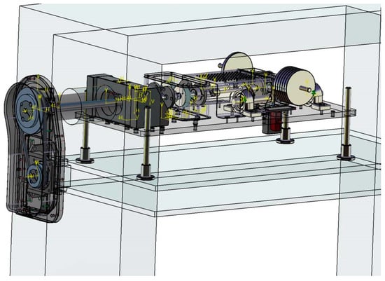 It is imperative to note that a novel support structure for the drive system must be engineered to achieve an efficient decoupling of the drive mechanism from the components housed within the climatic chamber. Without the incorporation of the new support shown in Figure 8, the bearings on the slave gearbox will be out of duty after a few hours. All internal transmission systems within the chamber are lubricated with grease resistant to high temperatures. No lubrication issues have emerged during operation, even within the climatic chamber.