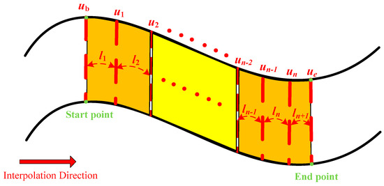 where ls is the approximate length of the linear segment. Generally, the length of the parametric curve cannot be obtained by analytical methods. Hence, the approximate segment length is solved using the method shown in Figure 5. Note that this approximate method is suitable for both the linear segment and curve segment.