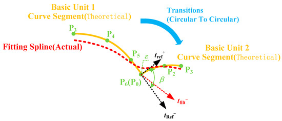 To achieve continuity in a third geometric derivative of P(u), the number of control points is set to 7 and the degree is set to 5. Moreover, the symmetry on both sides of the high-curvature points is guaranteed by introducing a non-periodic vector Up = [0 0 0 0 0 0 0.5 1 1 1 1 1 1].