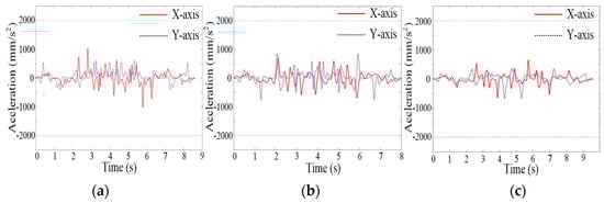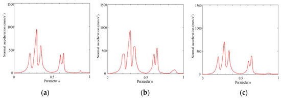 Acceleration results of butterfly-shaped NURBS curve. (a) Proposed method; (b) typical offline method; (c) FIR method.