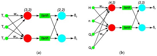 Neural network structure for thermal deformation modeling; (a) NNet2; (b) NNet3.