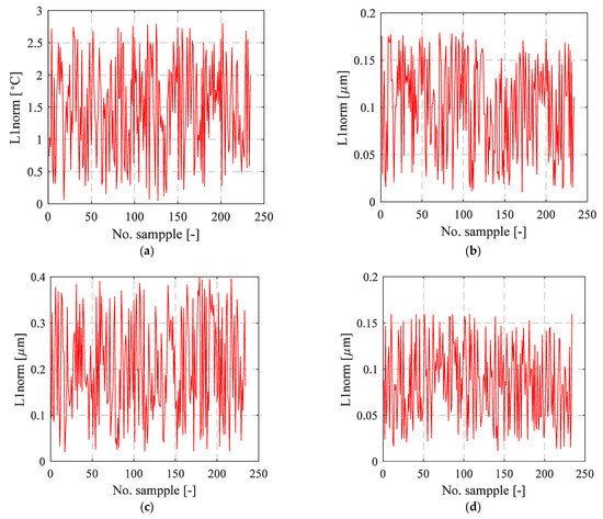 An automatic modeling algorithm employing the Chebyshev polynomial-based orthogonal least squares regression was proposed by Li et al. [5] to improve the modeling accuracy and the efficiency of the geometric error components. Determining the best position of the temperature sensor by covariance characteristic of the least square value was performed by Naumann et al. [6]. Multiple regressions were utilized to establish a connection between one dependent variable and one or more independent variables through statistical analysis of the experimental sample data. Chen et al. [7] used multivariate regression modeling to find the right coefficient to ensure that the residual is equal at each data point and the objective function (thermal error) value is minimized. An improved linear multiple regression model was presented in [8]. The original objective function was extended by incorporating the additional weighted terms related to robust criterion functions, typically taking values smaller than one as residuals increase. The proposed method demonstrated its effectiveness in enhancing the accuracy of machine tools. Shi et al. [9] and Zhang et al. [10] determined the thermal deformation of screw shafts using thermal expansion definition-based calculation and multiple regression analysis, which required the collection of the critical temperature variables.