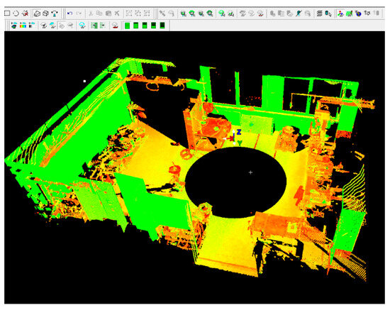 The resulting format of the visualization of the piston block maintenance work environment created using the 3D scanner is shown in Figure 7. In Figure 7, the comparison on the right shows the “digital noise” that needs to be cleaned up so that it does not obscure the important work environment data needed for the visualization and subsequent ergonomic analyses.