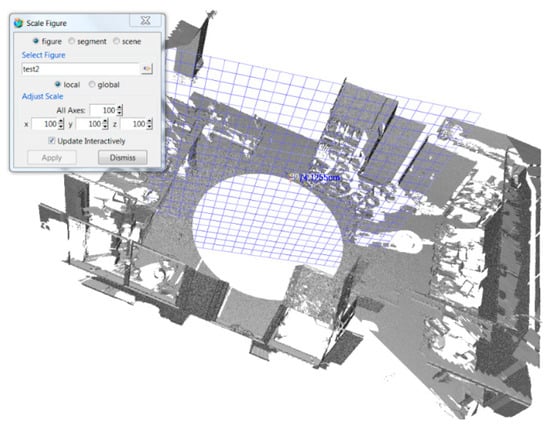 After opening the software work box, it is necessary to load the required scanned data. A function for translating external sources is also initiated at the same time. This function translates the external data into the native. The object extension format that TX Jack can work with, as well as the individual sizes, are correlated with the coordinate center using the built-in SCALE FIGURE function, shown in Figure 10.