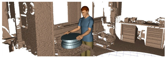 Figure 9 shows the preparatory phase of the ergonomic design solution for the piston block maintenance workplace, specifically its pressure control stand. The cleaned version of the real workstation scan is also centered based on the orientation of the scanned surface with respect to the global coordinate system also used in the TX Jack modeling tool.