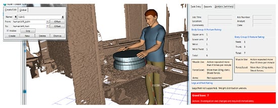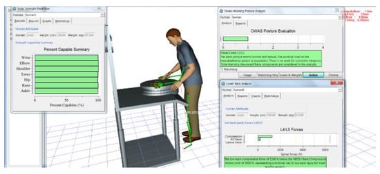 In a virtual manufacturing model, early detection of ergonomic problems reduces the time and cost of finding solutions [17], protects workers from unnecessary risk of harm, and improves workplace well-being [18,19].