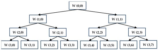 The tool used in this work, the wavelet packet transform (WPT), is based on applying the DWT recursively up to a decomposition level k chosen by the user (Figure 5).