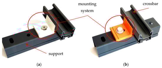 Possible solutions for the mounting system obtained by applying the AIDA method and considered for the environmental impact assessment: (a) a1b2c2d2-type structure; (b) a2b2c2d2-type structure.