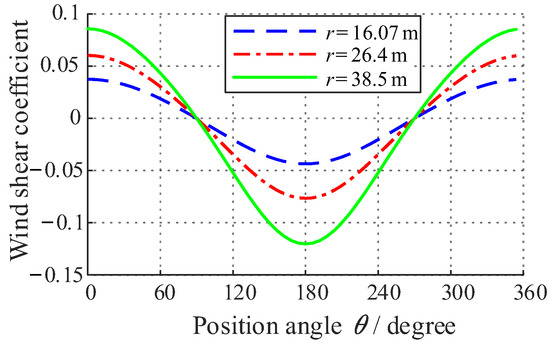 where is the position angle of a node in the rotational plane of the impeller, is the distance between the centre of the impeller hub and this node, and is the wind shear coefficient. Its expression can be expanded using the third-order Taylor series [37]: