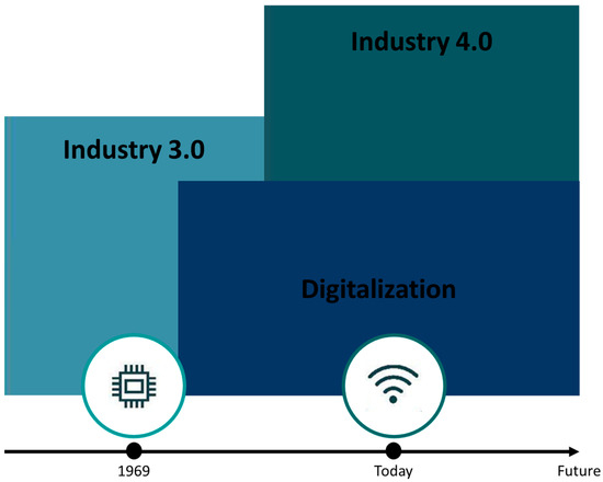 It is important to note that both terms, digitalization and Industry 4.0, are intertwined and difficult to differentiate from one another [10,23,24]; see Figure 3.