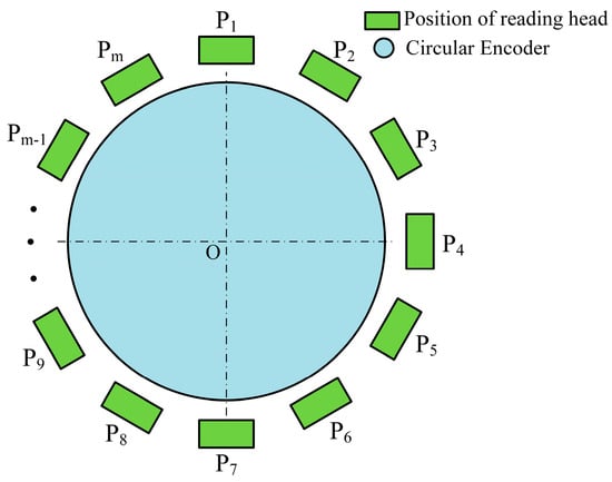 The principle of the EDA method is based on the Fourier series and the circular closed principle, where m reading heads are evenly distributed around the circular encoder, and the m reading heads are used to eliminate harmonic errors other than k = c × m order (c = 1, 2, 3,…) [21,22,23].