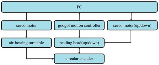 The hardware components of the experimental system include a circular encoder, reading heads, googol motion controller, and servo motors, as shown in Figure 4. The software running on a PC mainly realizes two functions: the data acquisition and processing function and the position control function of the reading head.