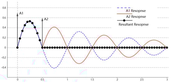 Figure 5 illustrates the working principle of input shaping using two pulses. The horizontal axis of the curve is measured in seconds (s) and the vertical axis is measured in millimeters (mm). When a pulse A1 is applied to a flexible system, it will cause the system to vibrate. The vibration response of an underdamped system is depicted in the figure above as the A1 response. If a second pulse, A2, is applied to the system with an amplitude opposite to that of the first pulse after one-half cycle, the vibration of the system will be completely suppressed. It is important to note that selecting the appropriate amplitude and duration of the second pulse is crucial in achieving effective vibration suppression. Ideally, complete suppression of vibration should be achieved.