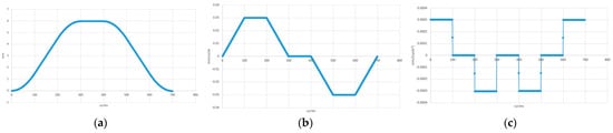 Figure 7a–c, the horizontal axis of the curve is measured in cycles/16 ms, while the vertical axis is measured in mm. The goal of T-trajectory interpolation is to improve the accuracy and efficiency of the automation system by achieving ideal motion characteristics.