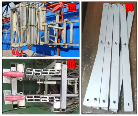 As shown in Figure 14a,b, the test prototype operation reveals that the snow removal operation end of the SRD decreases significantly after the scissor arm extension and the insulation is cut. Structural stress concentration due to gravity occurs during scissor arm movement. Nevertheless, the structural strength of the scissor arm is inadequate for sustaining these loads, resulting in deformation and wear of the scissor arm at the joints and causing the front end of the SRD to collapse, as shown in Figure 14c.
