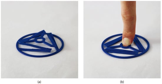 The Euler-spiral orthoplanar spring is a compliant mechanism that combines orthoplanar springs with Euler spirals. It is similar to the compliant orthoplanar spring proposed by Parise et al. [19], but the legs are extended Euler-spiral flexures in the uncompressed state, instead of flat or in-plane with the spring. Compare Figure 1a with Figure 1b, which show the as-fabricated configurations of both springs. The Euler-spiral orthoplanar spring’s zero-energy state, the extended configuration (as-fabricated), enables it to store strain energy when subjected to force and deflected to a flat configuration. This stored energy allows the spring to exert a reaction force with near-zero thickness.