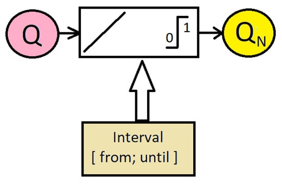 Real input data of the P01-P12 type (aggregated into the input layer, number of units L = 12) and real output data of the R00-R09 type (aggregated into the output layer, number of units N = 10), which express strong defined measurable physical quantities (see Table 3 and Table 4), were selected and approved for development. For an artificial neural network (ANN), input and output values must be presented in normalised form, which expresses the behaviour of fuzzy logic in the interval (0;1). Due to that, for all real values, the interval of distribution (XMIN; XMAX) was initially established (see Table 3 and Table 4). The module of data conversion recalculates the experimental input values Xi (i) and output values Yj (j ) to corresponding fuzzy logic values XXi and YYj in a forward or backward direction according to the formulas, respectively: