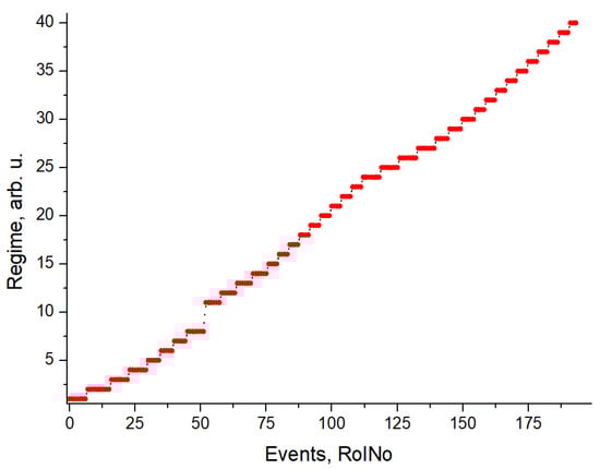 Figure 4 represents the distribution of experimental events (the current working state of the diesel engine) related to the different technical regimes (enumerated as 1…40). Experimental testing was carried out with the engine running at different speeds with varying loads, EGR, and SOI: