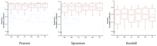 Figure 5 represents a comparison of different statistics: Pearson, Spearman, and Kendall.