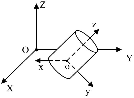 X0 = [x0 y0 z0]T represents the translation between the two coordinate systems, M = M(α)M(β)M(γ) represents the rotation about the three axes, and the rotation about the Z-axis of the cylinder can be ignored.