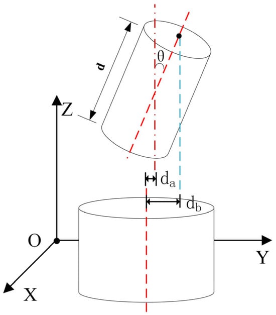 We measured and statistically analyzed the initial errors in the assembly. We obtained the range of initial assembly errors. We simplified the inner and outer cylinders as cylindrical bodies, representing the errors as da and θ, as shown in Figure 12.