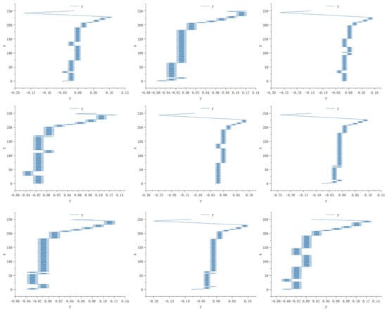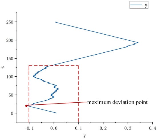We used the center of the inner cylinder as a feature point to analyze the assembly paths generated by the model, as shown in Figure 18. When the assembly was halfway completed, the inner and outer cylinders entered the pre-contact stage. Therefore, as long as the path did not exceed the maximum allowable deviation of 0.1 mm during this stage, it was acceptable. The early movement of the path represented the exploration phase of reinforcement learning, while the later stages were constrained by the reward function to return to the ideal assembly path.