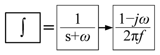 Employing a pure integrator to compute the grid virtual flux vector can give rise to two primary problems. First, the presence of a DC offset may result in integration drift. Second, the output signal may experience the generation of DC bias because of unknown initial terms of the input voltages or currents. To tackle this issue, a first-order low-pass filter and a compensation gain , adopted from [8], will be employed. Figure 3 illustrates the realization of integral operation in this study.