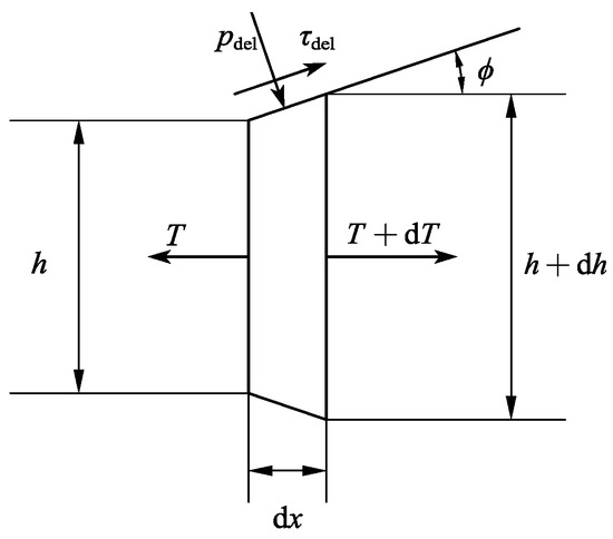 where h is the thickness of the strip at x length from the rolling exit and y is the distance from the central symmetric line of the strip. As shown in Figure 5, according to the stress field of any point in the above deformation zone, the force balance equation of the element with length dx in the horizontal direction can be listed: