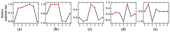 Principal mode of vertical system: (a) 1st order; (b) 2nd order; (c) 3rd order; (d) 4th order; (e) 5th order.