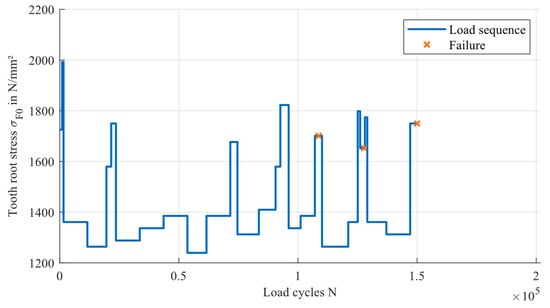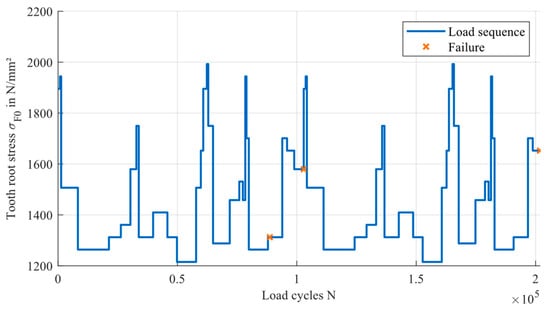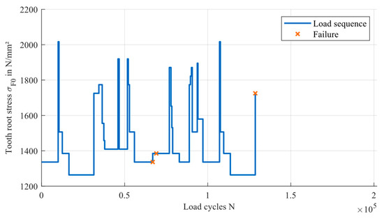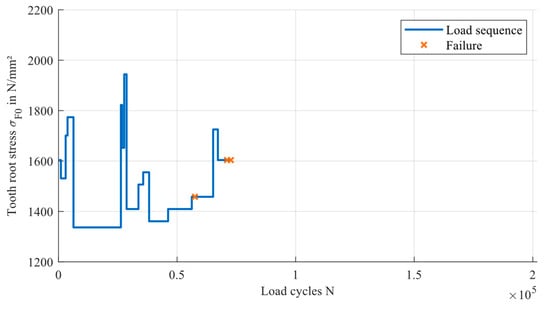 The focus of this publication is to evaluate the accuracy of the service life calculation under variable loads based on the different approaches for the load-carrying capacity. Therefore, data about the service life of gears under variable loads are required. These data are generated using the same experimental setup as described in Section 4. The test rig offers the possibility to program load sequences and test the gears until failure.