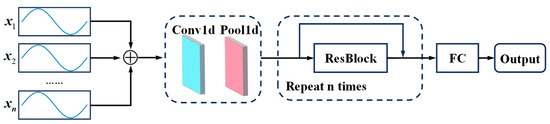 Figure 7. Conv is the convolution layer, BN represents the BatchNorm layer, dropout represents the dropout layer, and the activation function is ReLU. The number of convolution kernels in the residual block is 64 and 128, with strides of 1 and 2, and the kernel size is 3. In this paper, the ResBlock was set to repeat 20 times to form a deep network. FC is the full connection layer, which is used to nonlinearly map the features into tool wear values.