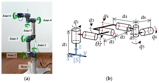 In this paper, the UR5 robot is used as the simulation object, as shown in Figure 7, where ai is the length of the connecting rod and qi is the rotation angle of the i-th joint. The axes of adjacent joints are orthogonal or parallel.