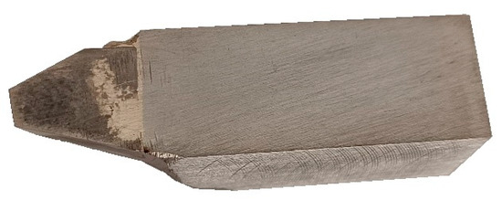 The cutting tool was a carbide insert brazed on the body, which was prismatic in shape (16 mm × 16 mm) and ground into the corresponding shape (Figure 4).